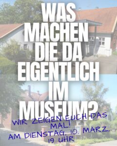 Wir möchten Ihnen auf der einen Seite zeigen, was man alles machen kann, wo noch Hilfe gebraucht wird, vor allem aber, wie toll und vielseitig unser Museum ist. Sie können aber auch nur zum Gucken kommen. Und zum Abschluss gibt es noch – als Belohnung – eine Führung durch das Museum mit Herrn Gerull!